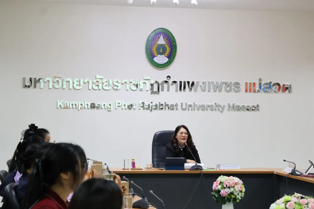 วันที่ 17 ตุลาคม 2568 ที่ห้องประชุมบุษราคัม ชั้น 1 อาคารเฉลิมพระเกียรติ มหาวิทยาลัยราชภัฏกำแพงเพชร แม่สอด อำเภอแม่สอด จังหวัดตาก ผู้ช่วยศาสตราจารย์ ดร.ปรียานุช พรหมภาสิต อธิการบดี เป็นประธานในการประชุมเชิงปฏิบัติการ การวางแผนและปฏิบัติการแนะแนวการศึกษาต่อ ในระดับอุดมศึกษาของมหาวิทยาลัยราชภัฏกำแพงเพชร ประจำปการศึกษา 2569 โดยมีคณะผู้บริหาร คณาจารย์ มหาวิทยาลัยราชภัฏกำแพงเพชร และครูแนะแนวในพื้นที่อำเภอแม่สอด จังหวัดตาก เข้าร่วมการประชุมฯ
