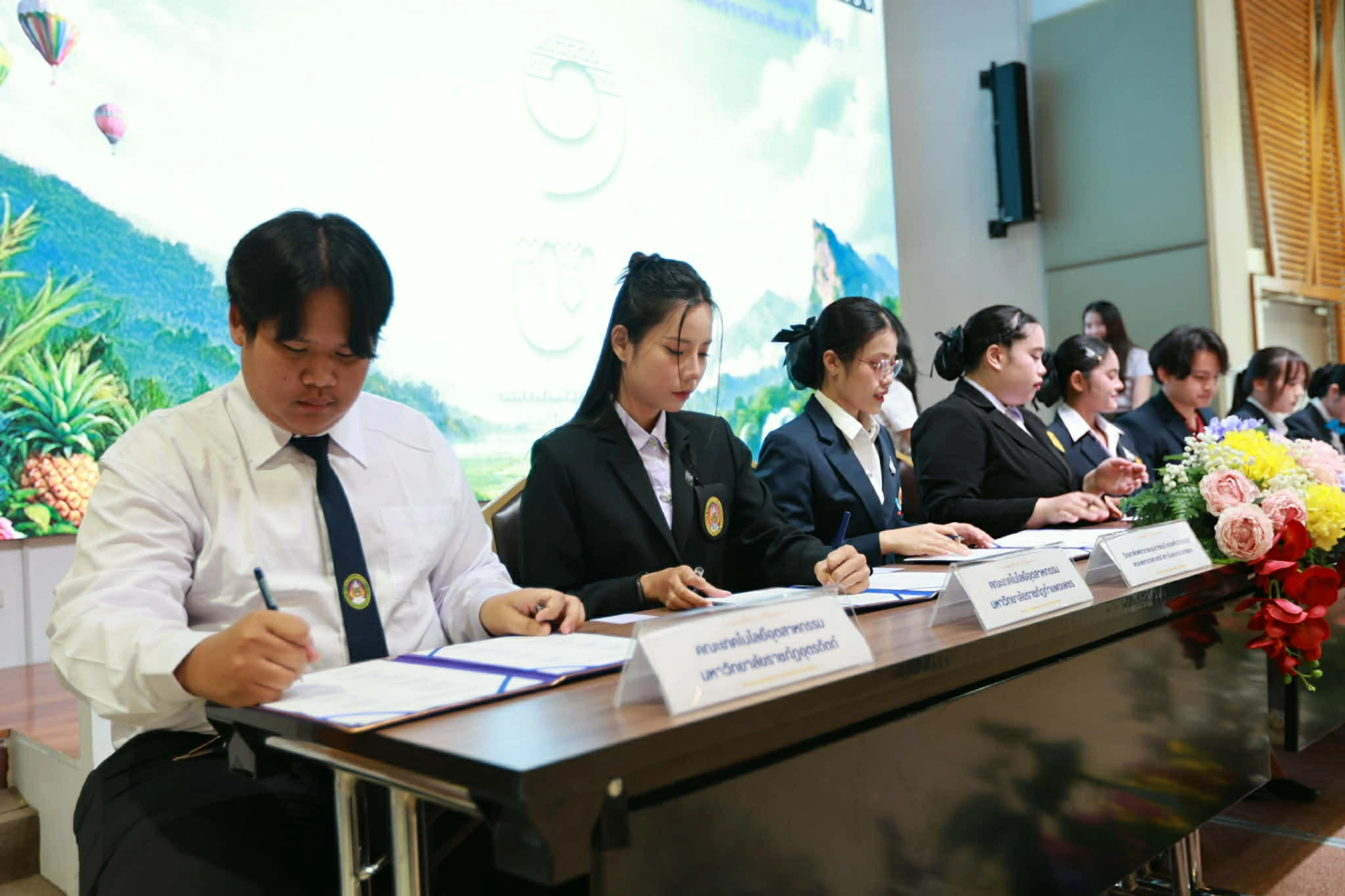 เมื่อวันที่ 21 มกราคา 2569 ดร.ธนกิจ โคกทอง รองคณบดีฝ่ายกิจการนักศึกษาและศิลปวัฒนธรรม และ นางสาวภูสุดา ฤทธิพงษ์ นายกสโมสรนักศึกษา คณะเทคโนโลยีอุตสาหกรรม มหาวิทยาลัยราชภัฏกำแพงเพชร ร่วมลงนามในบันทึกข้อตกลงระหว่างเครือข่าย ในงานเครือข่ายสถาบันอุดมศึกษาทั่วประเทศ ในงานประกวดและพัฒนาศักยภาพด้านกิจการนักศึกษาฯ ครั้งที่ 17 ระหว่างวันที่ 21-23 ม.ค. 2569 มหาวิทยาลัยราชภัฏเชียงราย จังหวัดเชียงราย