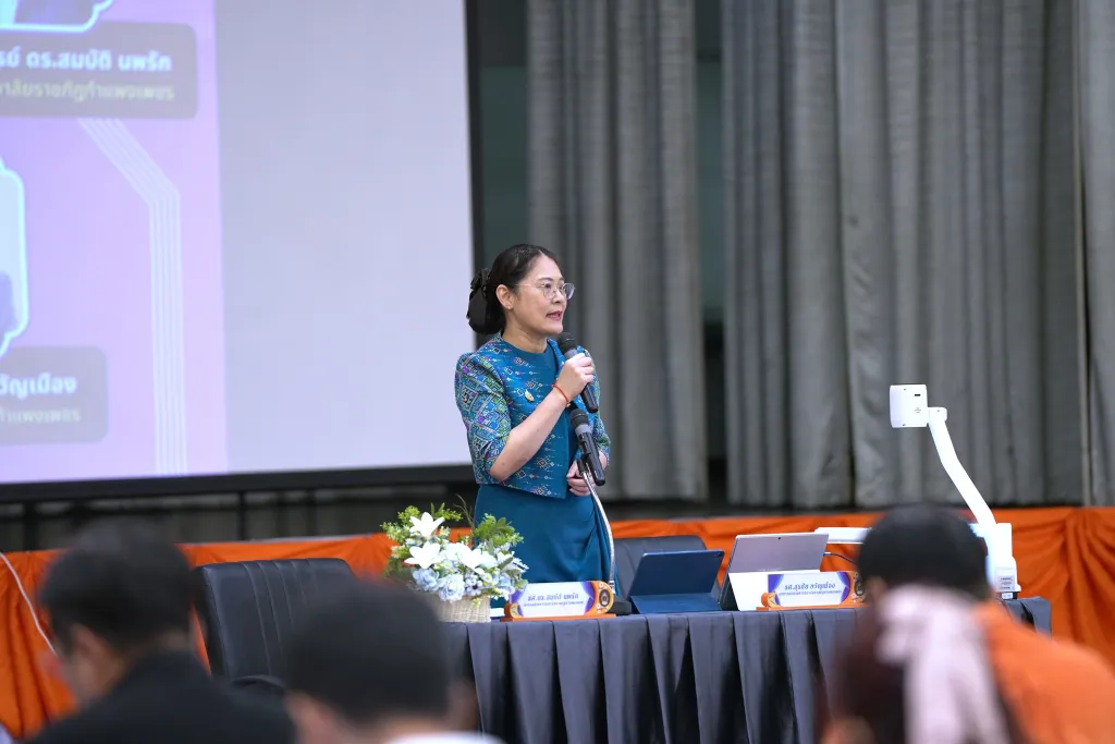 ผู้ช่วยศาสตราจารย์ ดร.ฆัมภิชา ตันติสันติสม รองอธิการบดีฝ่ายวิชาการ กล่าวรายงานว่า การประชุมดังกล่าว ได้จัดขึ้นเพื่อสร้างความรู้ความเข้าใจและเตรียมความพร้อมให้กับบุคลากรสายวิชาการเกี่ยวกับสมรรถนะด้านการจัดการเรียนการสอนตามมาตรฐานวิชาชีพอาจารย์ ให้มีคุณสมบัติเป็นไปตามกรอบมาตรฐานวิชาชีพอาจารย์ตามแนวทางการพัฒนาคุณภาพอาจารย์ สอดคล้องตามประกาศคณะกรรมการมาตรฐานการอุดมศึกษา เรื่อง แนวทางการพัฒนาคุณภาพอาจารย์ เพื่อส่งเสริมการบรรลุผลลัพธ์การเรียนรู้ตามมาตรฐานคุณวุฒิระดับอุดมศึกษา พ.ศ.2566 และประกาศมหาวิทยาลัยราชภัฎกำแพงเพชร เรื่อง นโยบายและแนวทางการพัฒนาคุณภาพอาจารย์ มหาวิทยาลัยราชภัฏกำแพงเพชร เพื่อใช้เป็นนโยบายและแนวทางในการพัฒนาคุณภาพอาจารย์ได้พัฒนาตนเองให้มีระดับคุณภาพอาจารย์ในระดับที่สูงขึ้นอย่างต่อเนื่อง