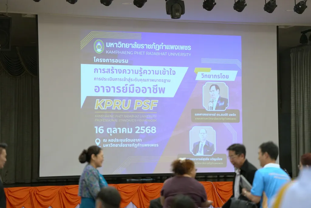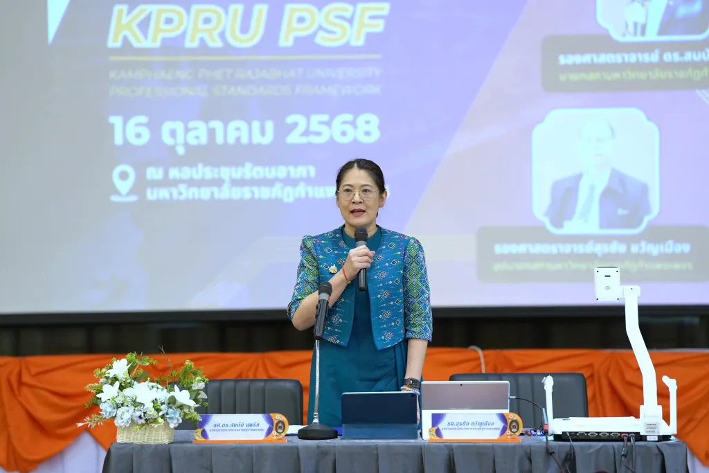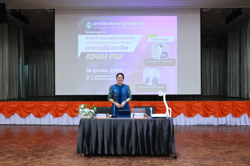 วันที่ 16 ตุลาคม 2568 ที่หอประชุมรัตนอาภา มหาวิทยาลัยราชภัฏกำแพงเพชร ผู้ช่วยศาสตราจารย์ ดร.ปรียานุช พรหมภาสิต อธิการบดี เป็นประธานในพิธีเปิดโครงการชุม "การสร้างความรู้ความเข้าใจ การประเมินการเข้าสู่ระดับคุณภาพมาตรฐาน อาจารย์มืออาชีพ KPRU PSF" โดยมี รองศาสตราจารย์ ดร.สมบัติ นพรัก นายกสภามหาวิทยาลัยฯ และรองศาสตราจารย์สุรชัย ขวัญเมือง อุปนายกสภามหาวิทยาลัยฯ เป็นวิทยากรผู้ทรงคุณวุฒิ มีบุคลากรสายวิชาการเข้าร่วมโครงการ จำนวน 310 คน