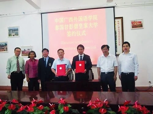 On last June 12, 2015, Kamphaeng Phet Rajabhat University led by Asst. Prof. Suwit Wongboonmak, President, Asst. Prof. Wisit Thanyavanh, Vice President for Academic Affairs, Asst. Prof. Dr. Soontaree Duangthip, Director of Thai Language Program, Mr. Norachatti Wang, Lecturer from Mae Fah Luang University and Ms. Chadaporn Chotiradapa, International Collaborations, International Relations Office visited Guangxi University of Foreign Languages, the People Republic of China