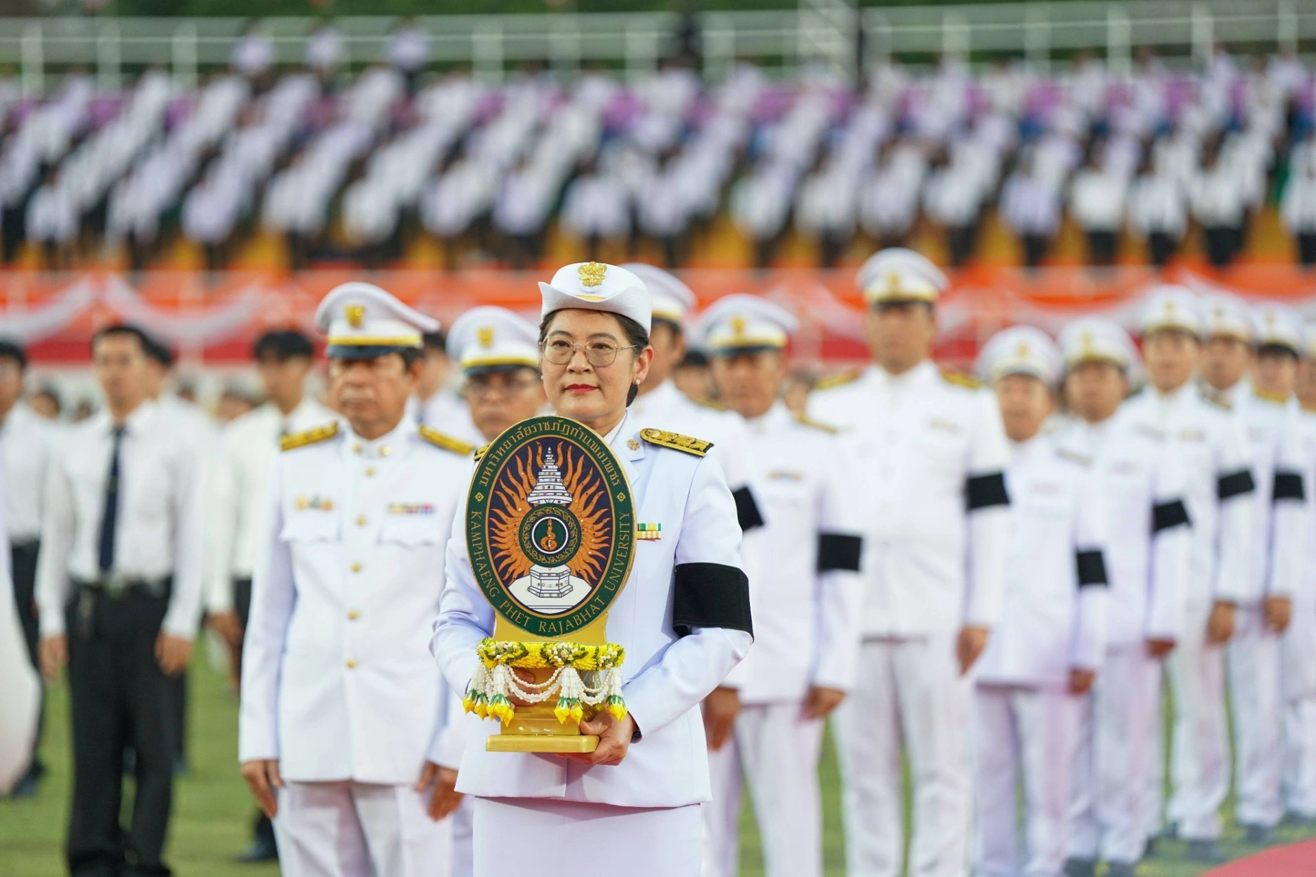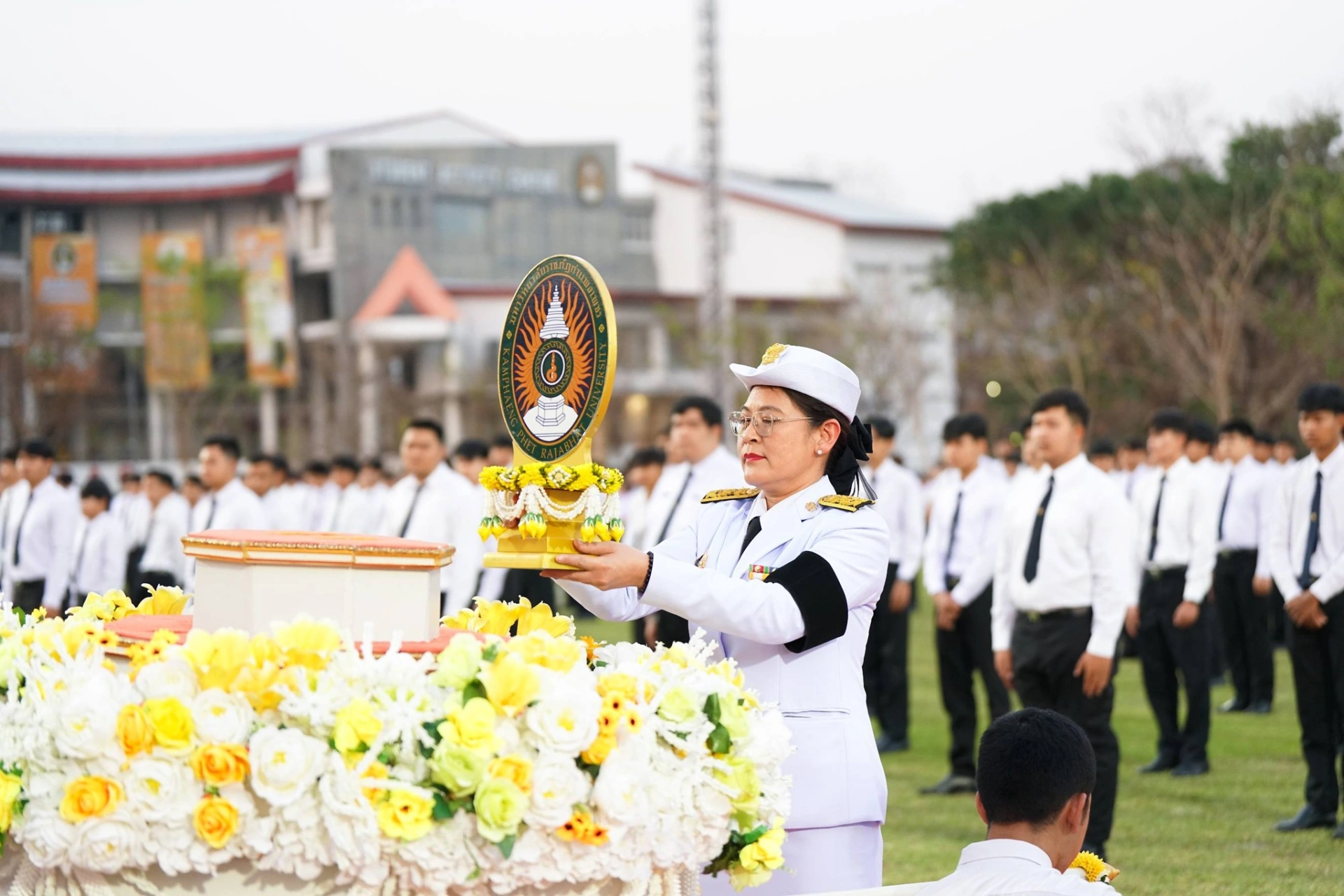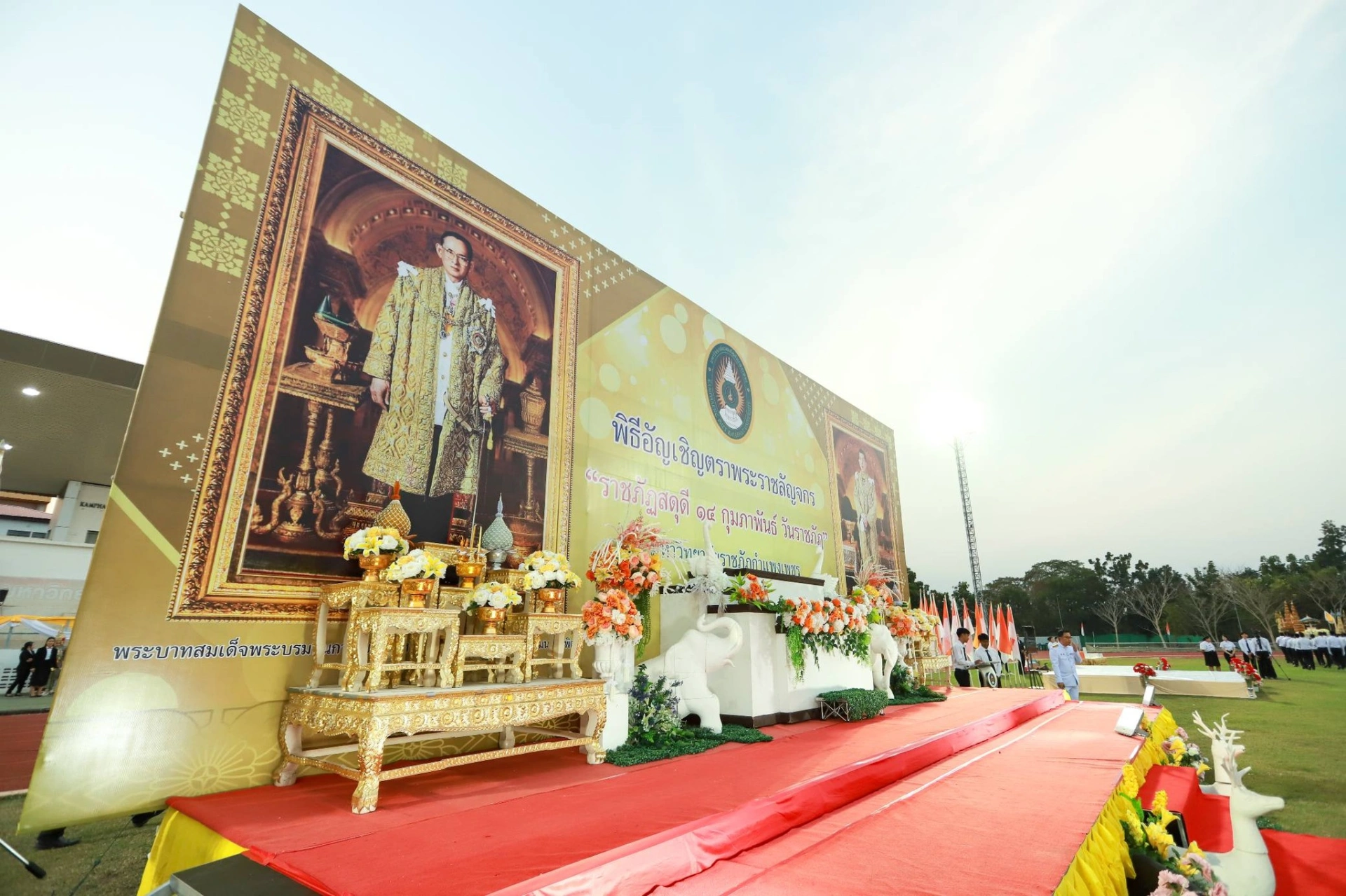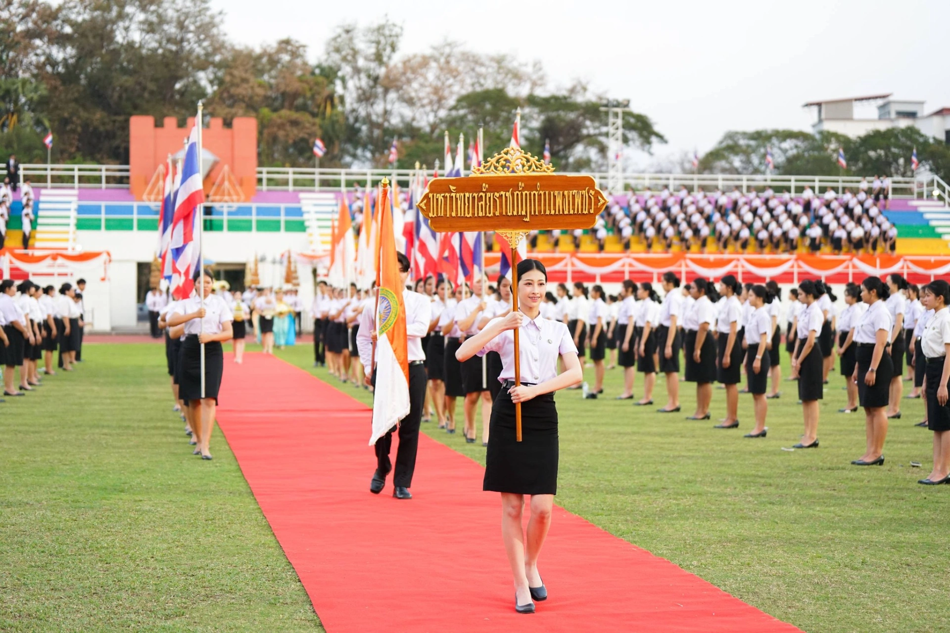 เมื่อวันที่ 13 กุมภาพันธ์ 2569 ผศ.ดร.ปรียานุช พรหมภาสิต อธิการบดีมหาวิทยาลัยราชภัฏกำแพงเพชร เป็นประธาน พร้อมด้วยผู้บริหาร บุคลากร และนักศึกษา เข้าร่วมพิธีโดยพร้อมเพรียงกัน ณ สนามกีฬากลาง มหาวิทยาลัยราชภัฏกำแพงเพชร