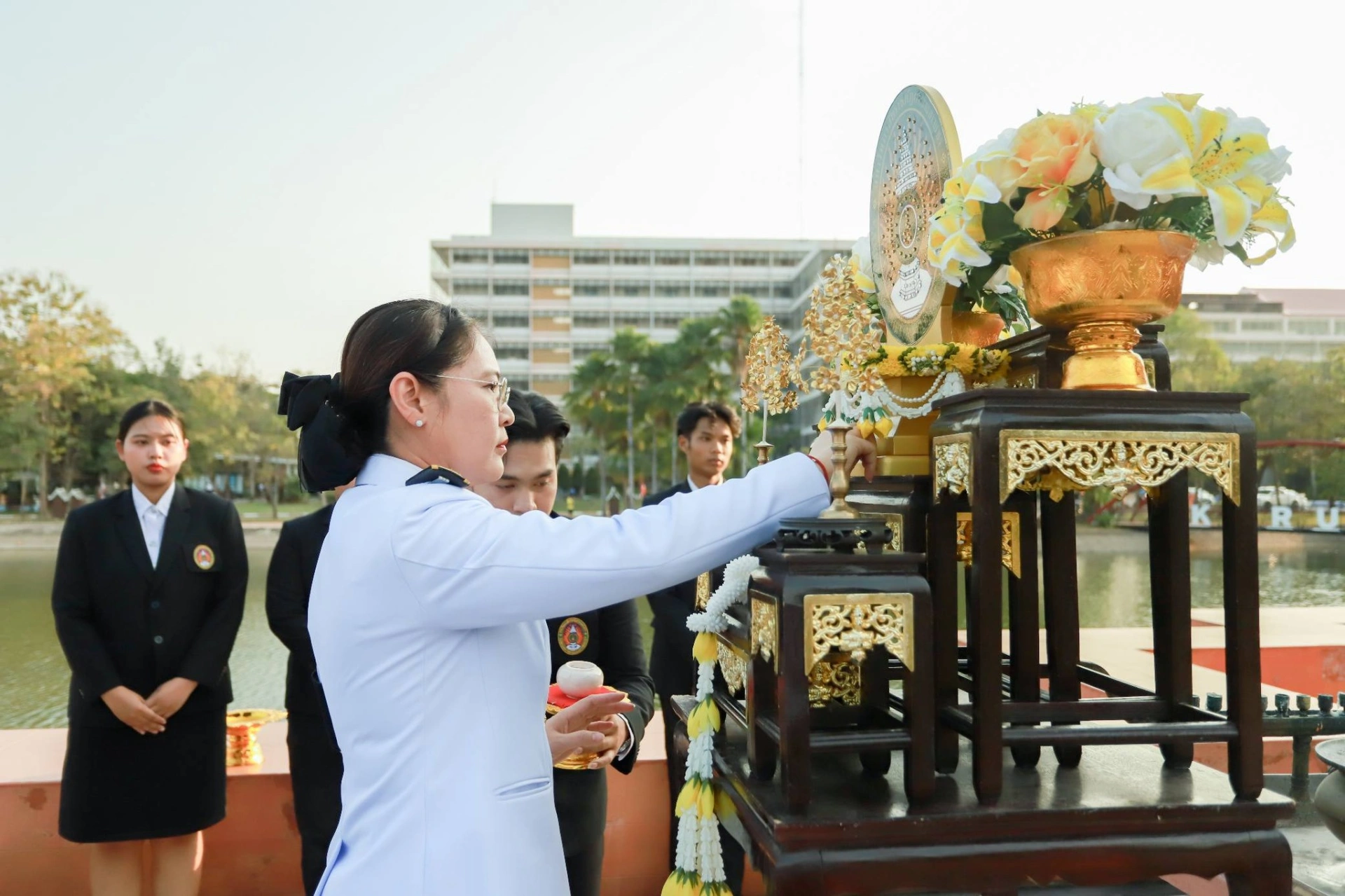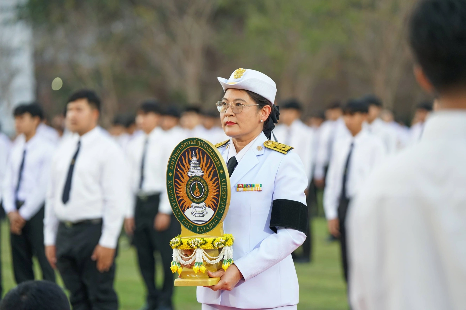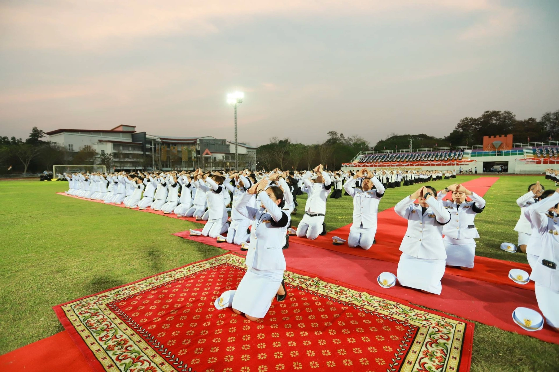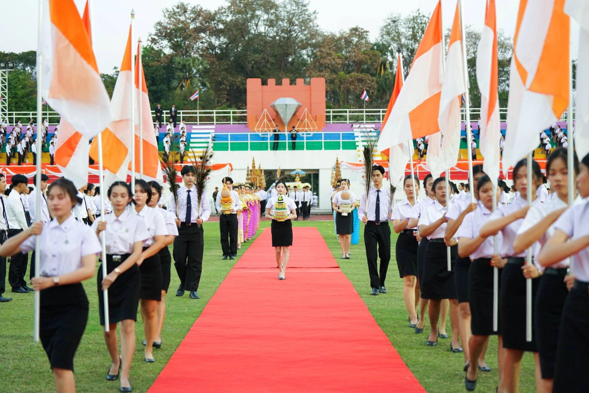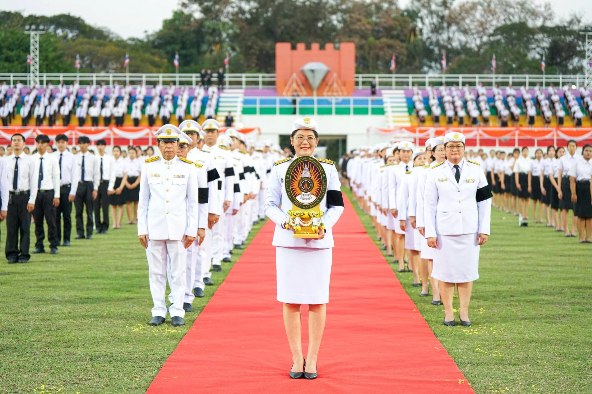 เมื่อวันที่ 13 กุมภาพันธ์ 2569 ผศ.ดร.ปรียานุช พรหมภาสิต อธิการบดีมหาวิทยาลัยราชภัฏกำแพงเพชร เป็นประธาน พร้อมด้วยผู้บริหาร บุคลากร และนักศึกษา เข้าร่วมพิธีโดยพร้อมเพรียงกัน ณ สนามกีฬากลาง มหาวิทยาลัยราชภัฏกำแพงเพชร
