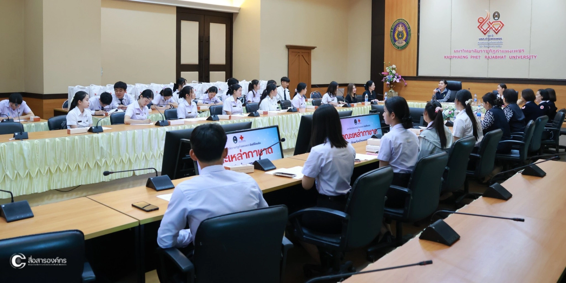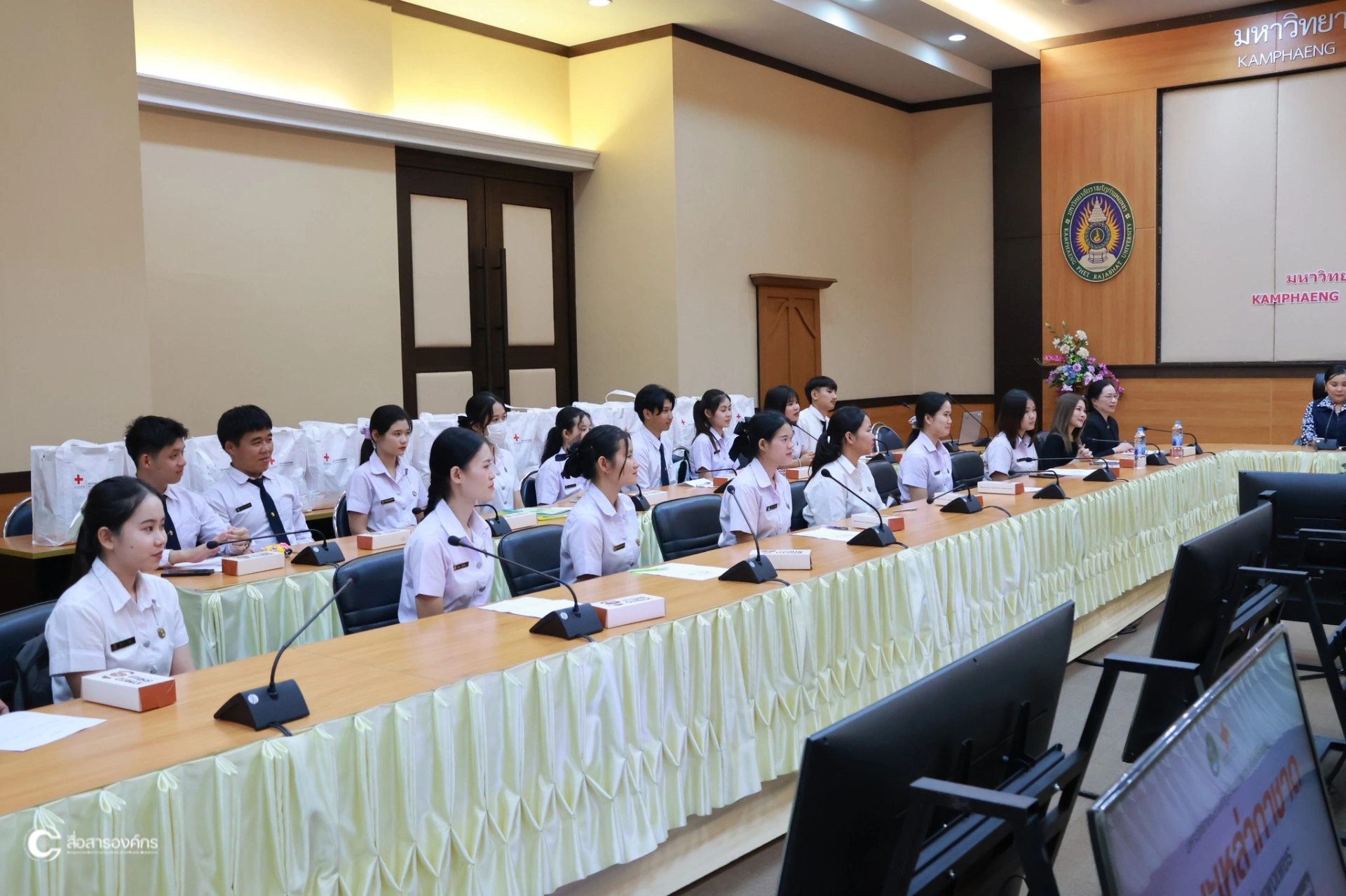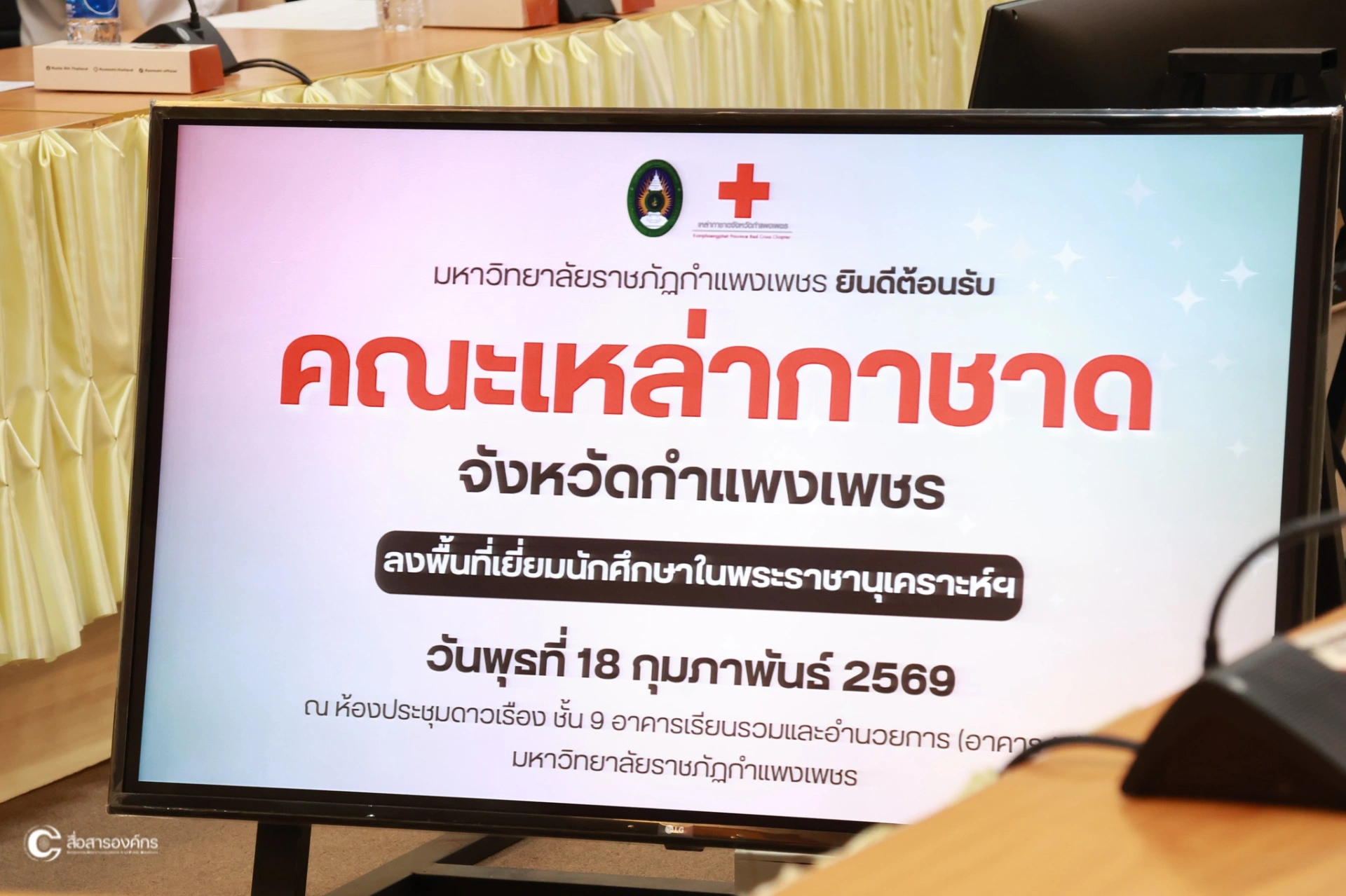 เมื่อวันที่ 18 กุมภาพันธ์ พ.ศ. 2569 นางกาญจนี รุจนเสรี นายกเหล่ากาชาดจังหวัดกำแพงเพชรและคณะ ลงพื้นที่เยี่ยมนักศึกษาในพระราชานุเคราะห์ฯ สมเด็จพระกนิษฐาธิราชเจ้า กรมสมเด็จพระเทพรัตนราชสุดาฯ สยามบรมราชกุมารี ณ ห้องประชุมดาวเรือง ชั้น 9 อาคาร 14 มหาวิทยาลัยราชภัฎกำแพงเพชร โดยมี รองศาสตราจารย์ ดร.พธูรำไพ ประภัสสร รองอธิการบดีฝ่ายกิจการนักศึกษาและศิลปวัฒนธรรม และนางสาวปราณี แผนดี รักษาการในตำแหน่งผู้อำนวยการกองพัฒนานักศึกษา ร่วมต้อนรับ