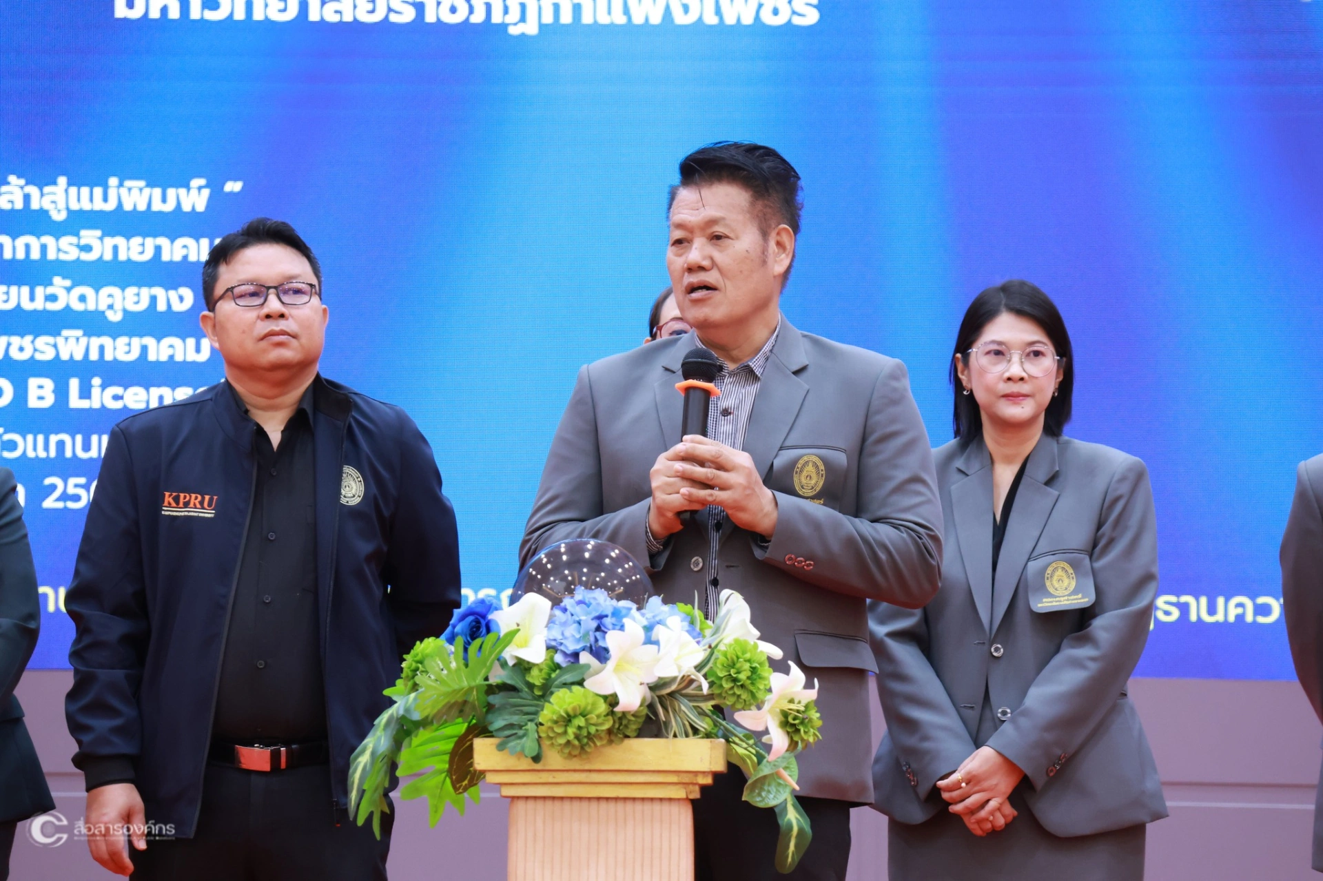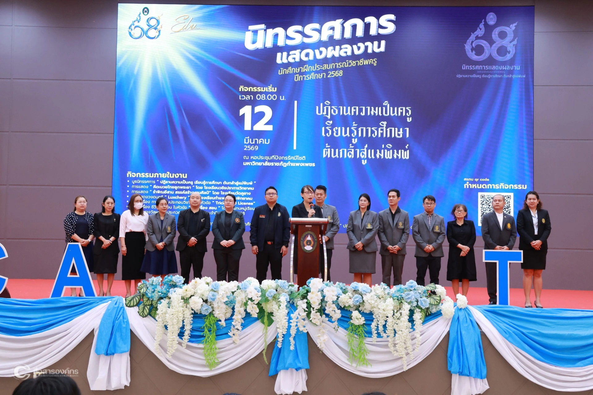 วันที่ 12 มีนาคม 2569 ผศ.ดร.ฆัมภิชา ตันติสันติสม รองอธิการบดีฝ่ายวิชาการ เป็นประธานในพิธีเปิดนิทรรศการแสดงผลงานนักศึกษาฝึกประสบการณ์วิชาชีพครู ปีการศึกษา 2569 “ปณิธานความเป็นครู เรียนรู้การศึกษา ต้นกล้าสู่แม่พิมพ์” ณ ห้องประชุมราชพฤกษ์ ชั้น 3 อาคารทีปังกรรัศมีโชติ มหาวิทยาลัยราชภัฏกำแพงเพชร