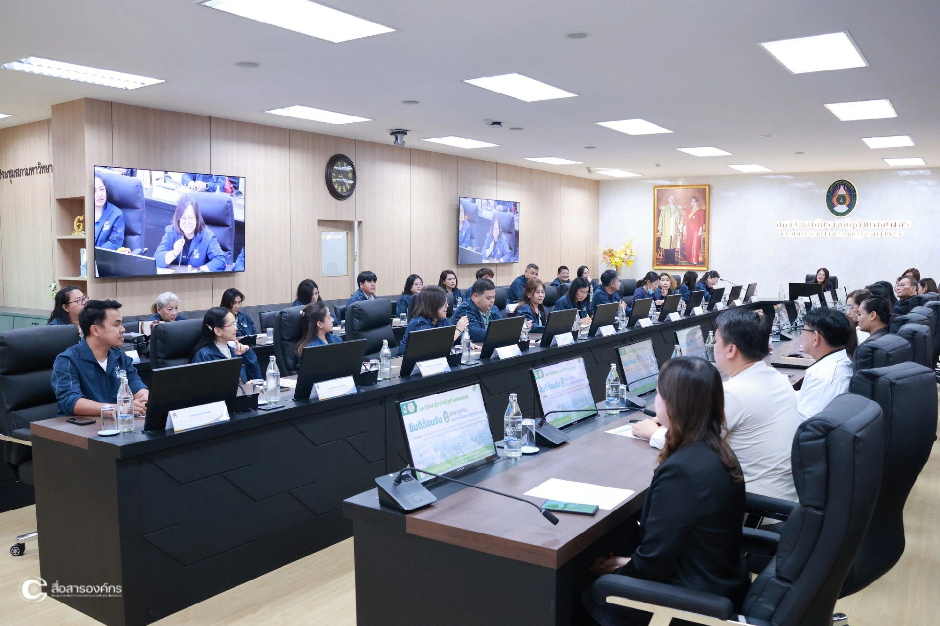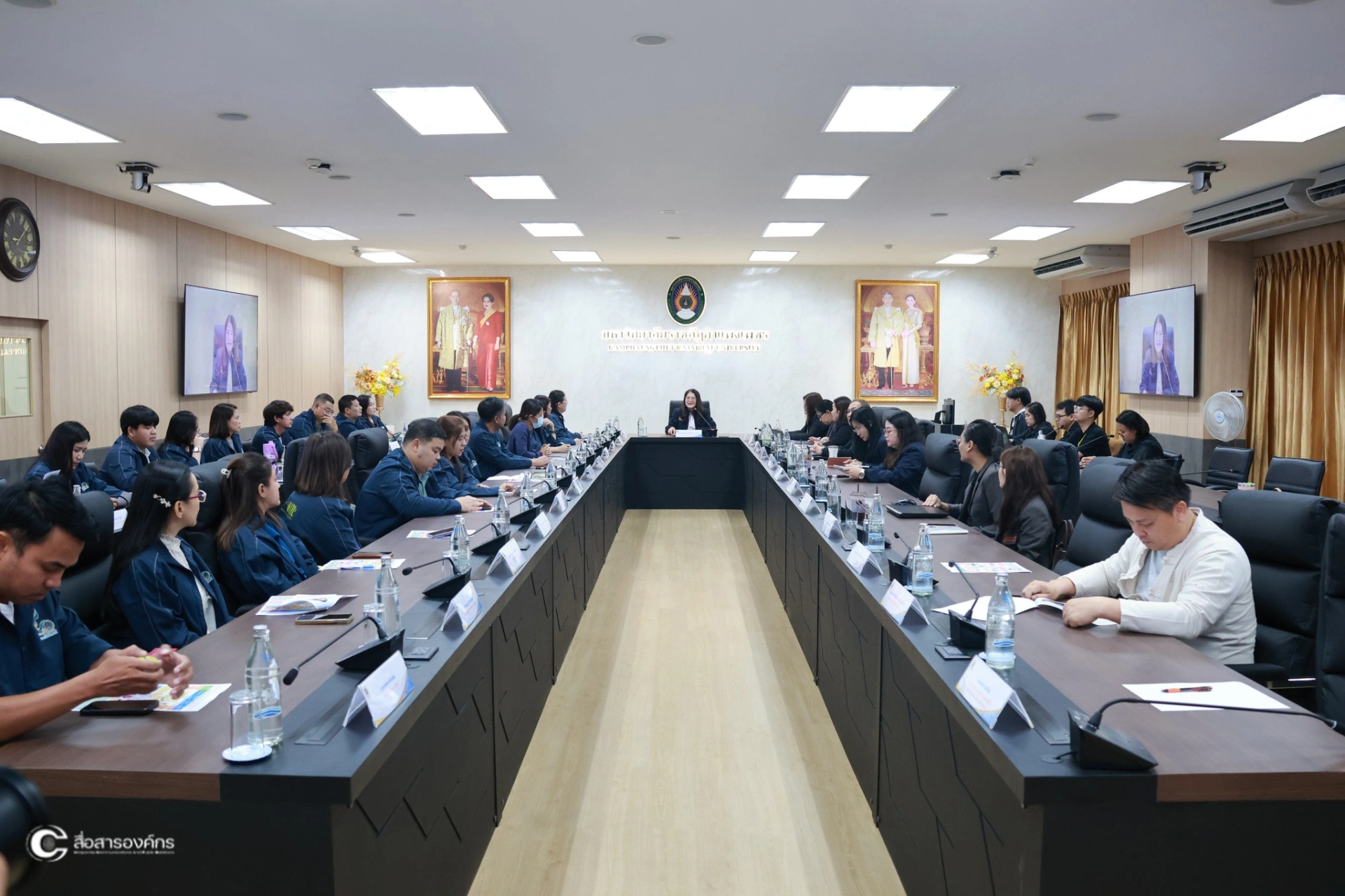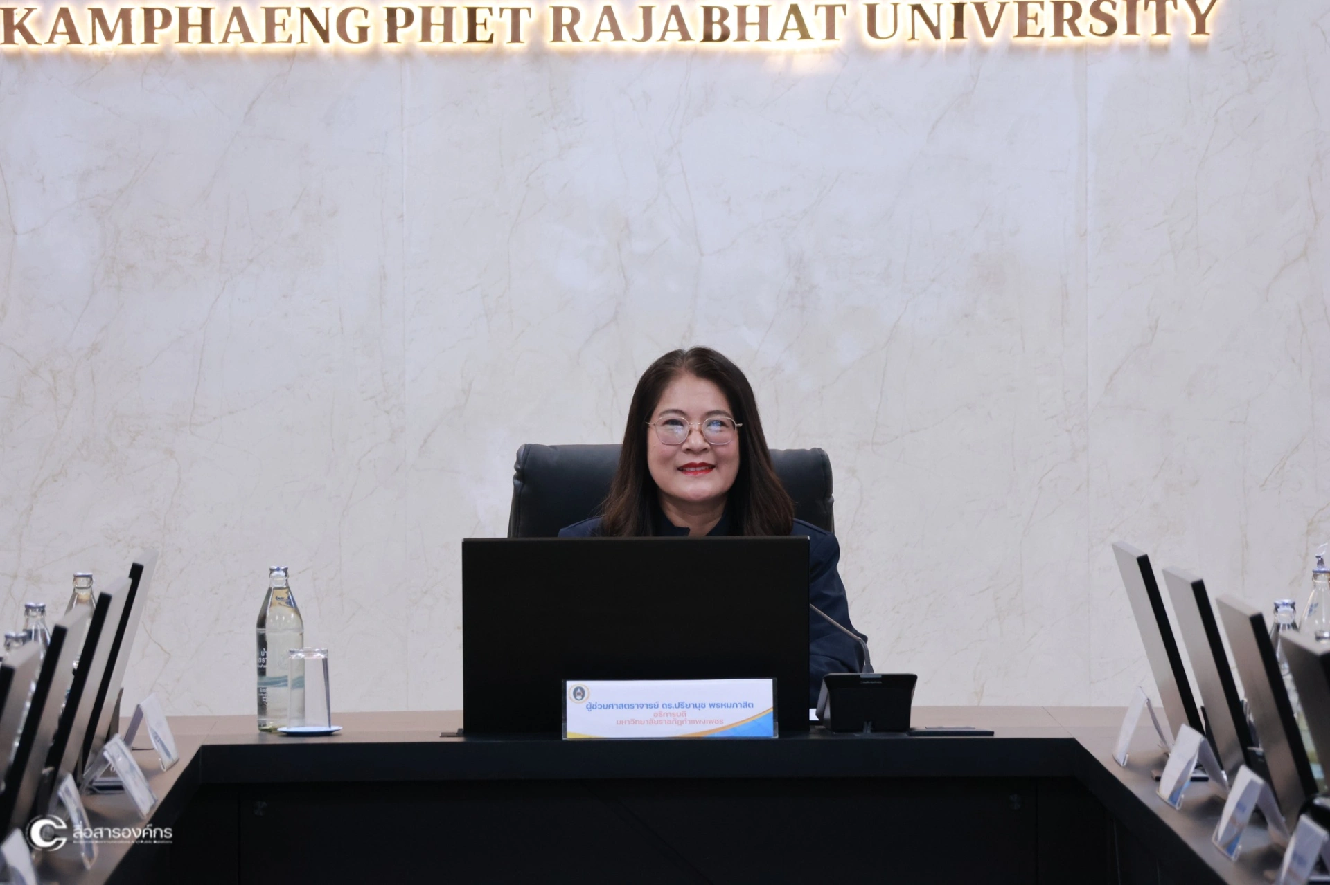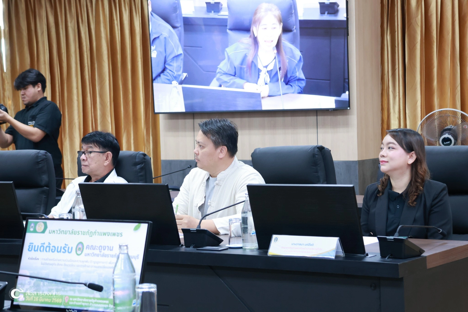 วันที่ 16 มีนาคม 2569 ผศ.ดร.ปรียานุช พรหมภาสิต อธิการบดี กล่าวต้อนรับ คณะศึกษาดูงานมหาวิทยาลัยราชภัฏกาญจนบุรี เพื่อรับฟังการบรรยายและแลกเปลี่ยนเรียนรู้เกี่ยวกับการขับเคลื่อนโมเดลขจัดความยากจน “ท่าพุทราโมเดล” ภายใต้แผนงานยุทธศาสตร์มหาวิทยาลัยราชภัฏเพื่อการพัฒนาท้องถิ่น ณ ห้องประชุมรวงผึ้ง ชั้น 8 อาคารเรียนรวมและอำนวยการ (อาคาร 14) มหาวิทยาลัยราชภัฏกำแพงเพชร
