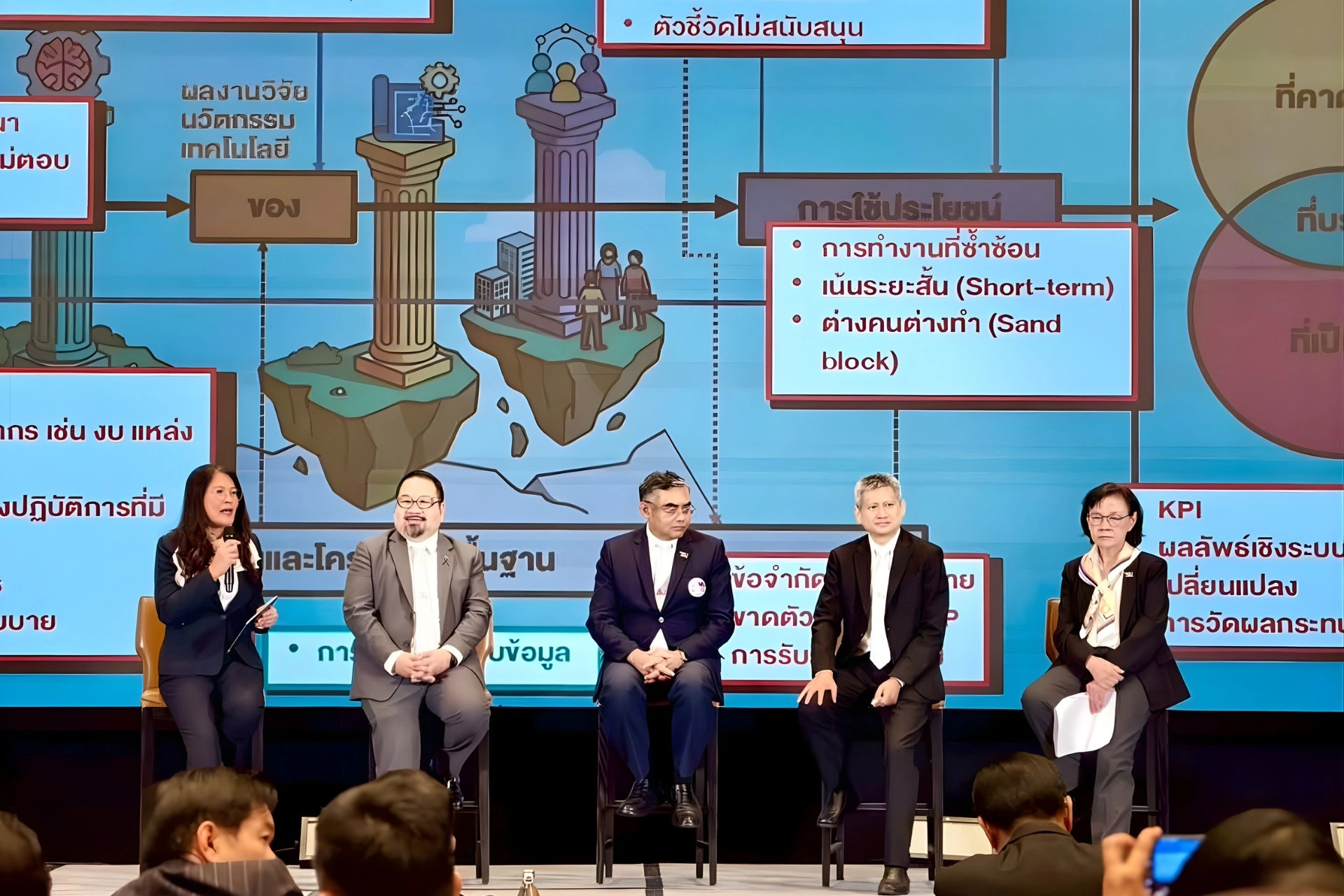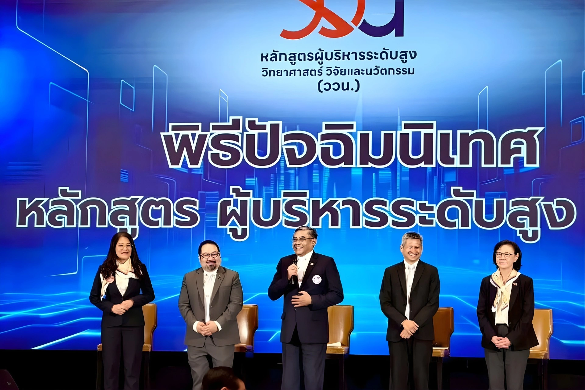 หลักสูตร "ผู้บริหารระดับสูง วิทยาศาสตร์ วิจัยและนวัตกรรม (ววน.) รุ่นที่ 1" มุ่งสร้างพื้นที่การเรียนรู้เชิง ยุทธศาสตร์สำหรับผู้บริหารจากหลายภาคส่วน เพื่อเสริมสร้างความเข้าใจเชิงลึกด้านนโยบาย ทิศทาง และกลไกการขับเคลื่อนประเทศด้วยวิทยาศาสตร์ วิจัยและนวัตกรรมอย่างเป็นรูปธรรมพร้อมเชื่อมโยงนโยบายสู่การปฏิบัติ และร่วมกันยกระดับประสิทธิภาพการบริหารจัดการระบบววน. ของประเทศในภาพรวม ศาสตราจารย์เกียรติคุณ ดร.นพ.สิริฤกษ์ ทรงศิวิไล ประธานกรรมการส่งเสริม วิทยาศาสตร์ วิจัยและนวัตกรรม (กสว.) กล่าวถึงบทบาทของระบบ ววน. ในการขับเคลื่อนประเทศสู่การพัฒนาอย่างยั่งยืน โดยชี้ให้เห็นว่าโครงสร้างการทำงานของระบบ ววน. จำเป็นต้องอาศัยความร่วมมือของทุกภาคส่วน ตั้งแต่การจัดทำนโยบายและแผนด้าน ววนการจัดสรรงบประมาณ การบริหารจัดการงานวิจัยและนวัตกรรม ไปจนถึงการนำผลงานวิจัยและนวัตกรรมไปใช้ประโยชน์ได้จริง การขับเคลื่อนระบบ ววน. ในระยะต่อไป จึงมุ่งเปลี่ยนจากการทำงานแบบแยกส่วนไปสู่การทำงานเชิงประเด็นและมุ่งเป้า พร้อมปรับรูปแบบการบริหารงบประมาณให้มีความต่อเนื่องและยืดหยุ่นมากขึ้น เพื่อสนับสนุนการสร้างผลลัพธ์ที่วัดได้ ทั้งใน มิติการลงทุนด้าน ววน. การสร้างองค์ความรู้ การใช้ประโยชน์เชิงพาณิชย์ และการเชื่อมโยงความร่วมมือของทุกภาคส่วน หัวใจสำคัญของการขับเคลื่อนระบบ ววน. คือการมีเจ้าภาพเชิงระบบที่ชัดเจน การเสริม ศักยภาพคนและองค์กร การใช้งบประมาณให้เกิดผลกระทบจริง และการเรียนรู้จากผลลัพธ์เพื่อนำไปปรับปรุงอย่างต่อเนื่อง เพื่อให้เงิน คน งานวิจัย และผลลัพธ์ เดินไปในทิศทางเดียวกันอย่างเป็นรูปธรรม